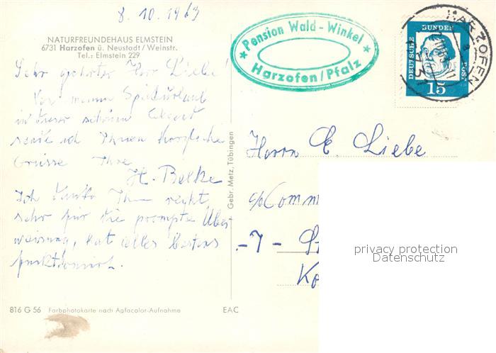 73095875 alte Postkarte Harzofen Naturfreundehaus Elmstein postalisch gelaufen Erhaltung siehe scans [NatalD47] KatCode: 11110007332014
