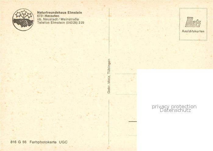 73687669 Harzofen Panorama mit Naturfreundehaus Elmstein postalisch nicht gelaufen Erhaltung siehe scans [FriedD77] KatCode: 11110007332014