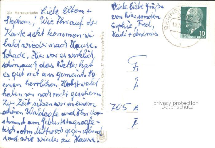 alte Postkarte Harzquerbahn postalisch gelaufen Erhaltung siehe scans