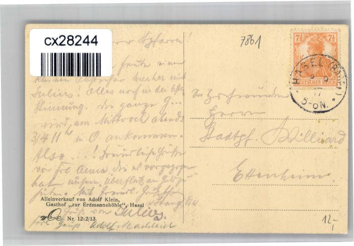 30908955 alte Postkarte Hasel Baden Hasler Hoehle BW Erdmannshoehle postalisch gelaufen KatCode: 11110008336034