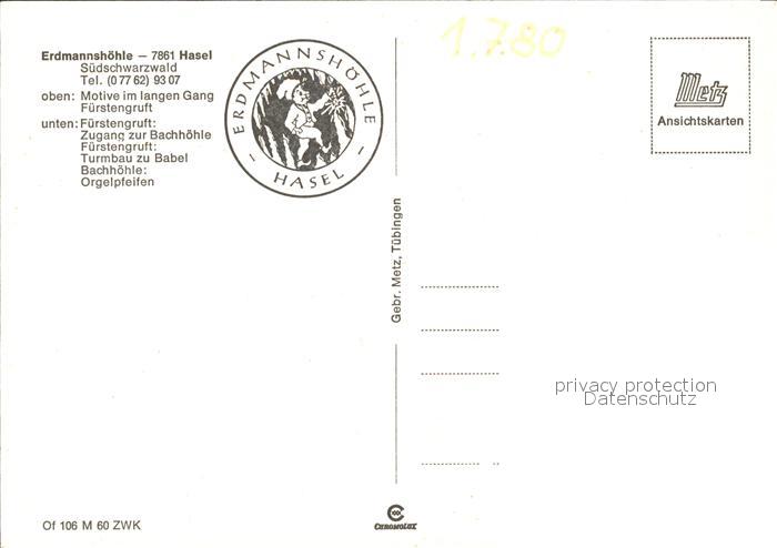71830636 Hasel Baden Hasler Hoehle BW Erdmannshoehle postalisch nicht gelaufen Erhaltung siehe scans KatCode: 11110008336034