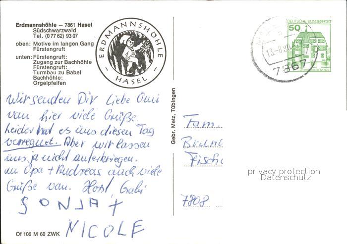 71830635 alte Postkarte Hasel Baden Hasler Hoehle BW Erdmannshoehle postalisch gelaufen Erhaltung siehe scans KatCode: 11110008336034