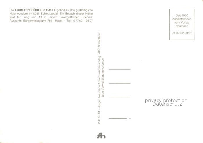 73226096 Hasel Baden Hasler Hoehle BW Erdmannshoehle postalisch nicht gelaufen Erhaltung siehe scans [LiesaD40] KatCode: 11110008336034