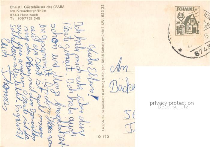 73720351 alte Postkarte Haselbach Rhoen Christliche Gaestehaeuser des CVJM am Kreuzberg postalisch gelaufen Erhaltung siehe scans [FriedD77] KatCode: 11110009673117