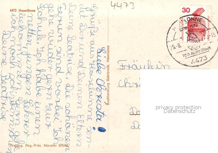73870207 alte Postkarte Haseluenne Fliegeraufnahme postalisch gelaufen Erhaltung siehe scans [WerneD78] KatCode: 11110003454019