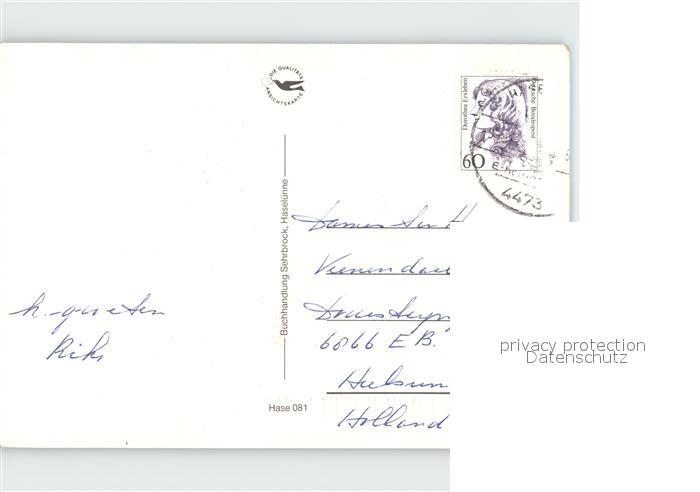 72300751 alte Postkarte Haseluenne Heimatmuseum Hasepartie mit Kirche postalisch gelaufen Erhaltung siehe scans KatCode: 11110003454019