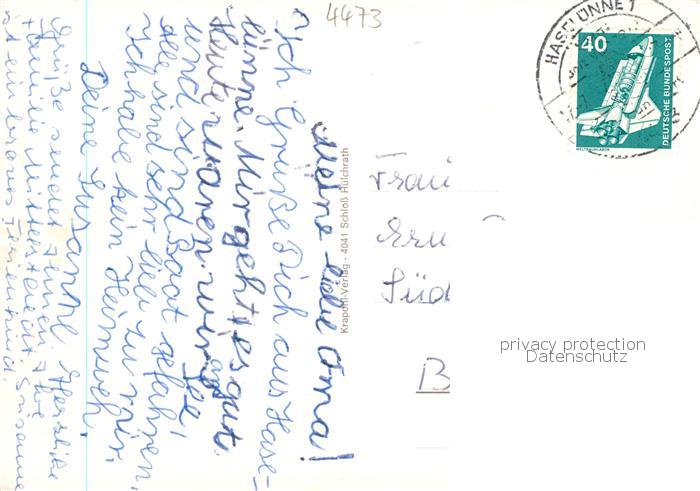 73870204 alte Postkarte Haseluenne Muehle Hueven Stadtbrunnen Pfarrkirche Ehrenmal Heimthaus Stadthalle Wacholderhain postalisch gelaufen Erhaltung siehe scans [WerneD78] KatCode: 11110003454019
