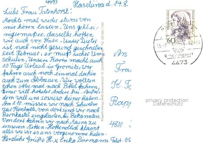 73758427 alte Postkarte Haseluenne Partie an d. Hase Heimathaeuser-Backstein Markt Haus-am-See postalisch gelaufen Erhaltung siehe scans [LiesaD40] KatCode: 11110003454019