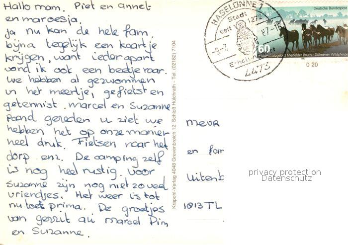 73306102 alte Postkarte Haseluenne Wacholderhain Heimathaeuser Campingplatz Am See postalisch gelaufen Erhaltung siehe scans [WerneD78] KatCode: 11110003454019
