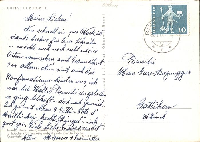 71380581 Hasen Ostern Kind Blumen Künstlerkarte Arnulf Nr. CH 138 KatCode 22540000001000