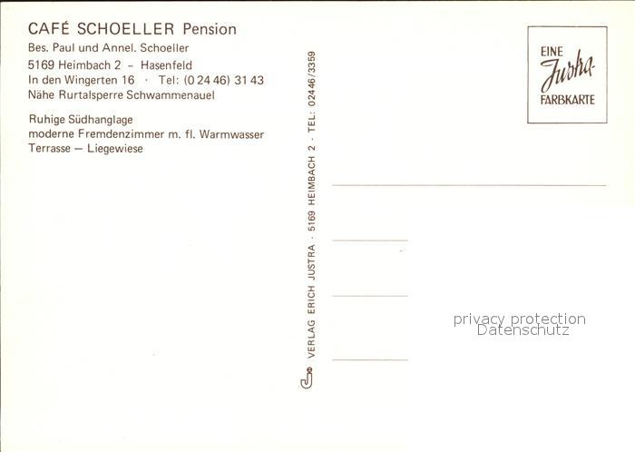 72426933 Hasenfeld Cafe Schoeller Pension Rurtalsperre Schwammenauel Fliegeraufnahme postalisch nicht gelaufen Erhaltung siehe scans KatCode: 11110005358012