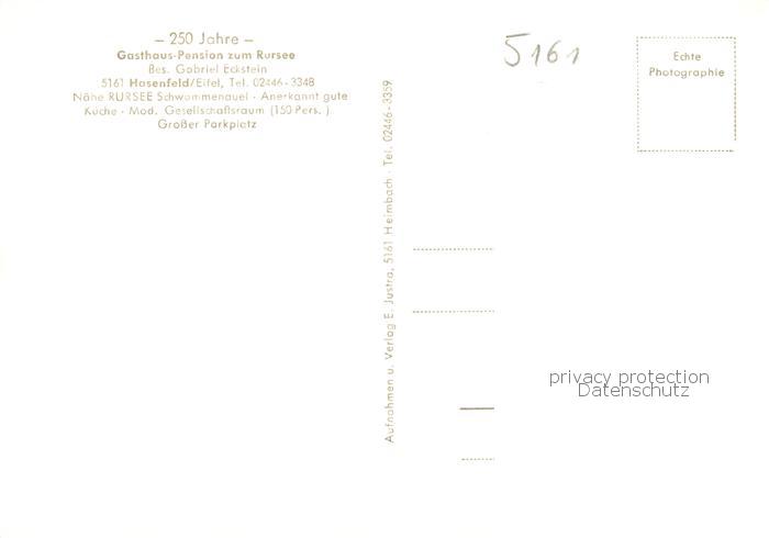 73852578 Hasenfeld Gasthaus Pension zum Rursee Gastraum Fliegeraufnahmen postalisch nicht gelaufen Erhaltung siehe scans [WerneD78] KatCode: 11110005358012