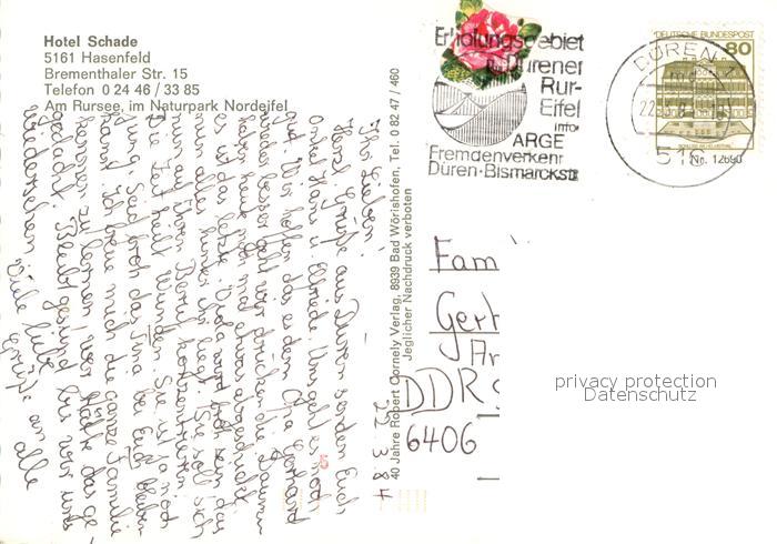 73649188 alte Postkarte Hasenfeld Hotel Schade Garten postalisch gelaufen Erhaltung siehe scans [FriedD77] KatCode: 11110005358012
