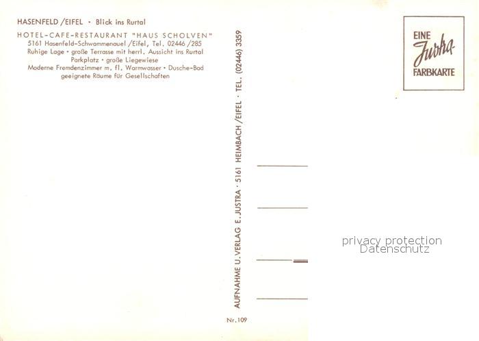 73596409 Hasenfeld Panorama Blick ins Rurtal Hotel Cafe Restaurant Haus Scholven postalisch nicht gelaufen Erhaltung siehe scans [FriedD77] KatCode: 11110005358012
