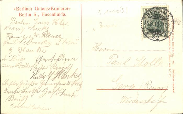 41332441 alte Postkarte Hasenhaide Berlin Berliner Unions Brauerei Gartenterrasse postalisch gelaufen gute Erhaltung KatCode: 11110011000000