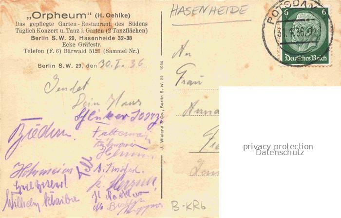 74059735 alte Postkarte Hasenheide KREUZBERG RIEDRICHSHAIN-KREUZBERG BERLIN Orpheum Gartenansicht auf die Terrassen und Festsaele postalisch gelaufen Erhaltung siehe scans [WerneD78] KatCode: 11110011000000