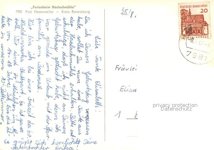 73644528 alte Postkarte Hasenweiler Ferienheim Haslachmuehle postalisch gelaufen Erhaltung siehe scans [FriedD77] KatCode: 11110008436095