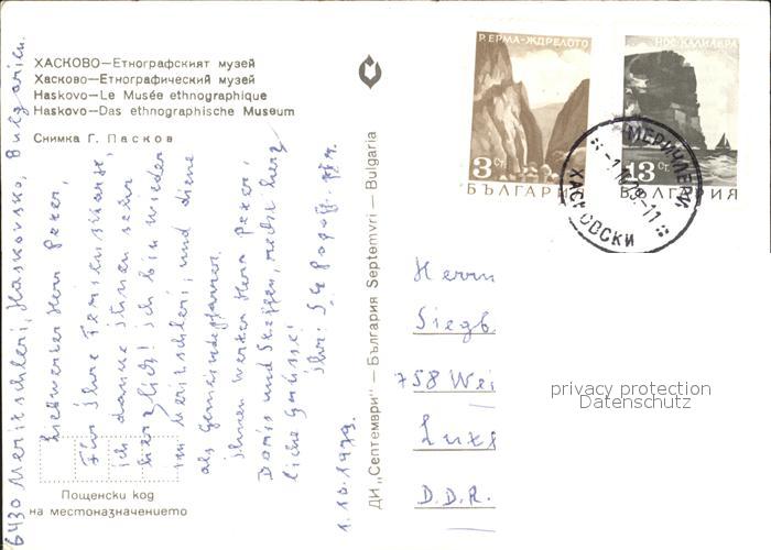 old postcard Haskovo Ethnographisches Museum postalisch gelaufen Erhaltung siehe scans