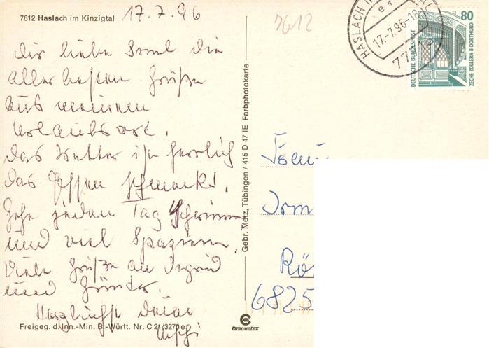 73928460 alte Postkarte Haslach Kinzigtal Fliegeraufnahme postalisch gelaufen Erhaltung siehe scans [FriedD77] KatCode: 11110008317040