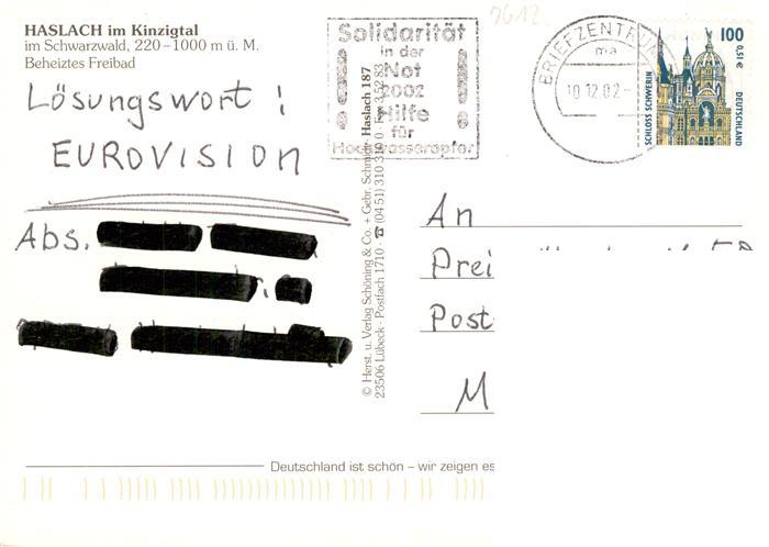 73928749 alte Postkarte Haslach Kinzigtal Freibad Wasserrutsche postalisch gelaufen Erhaltung siehe scans [FriedD77] KatCode: 11110008317040