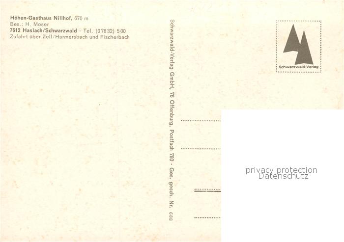 73874032 Haslach Kinzigtal Hoehen Gasthaus Nillhof postalisch nicht gelaufen Erhaltung siehe scans [WerneD78] KatCode: 11110008317040