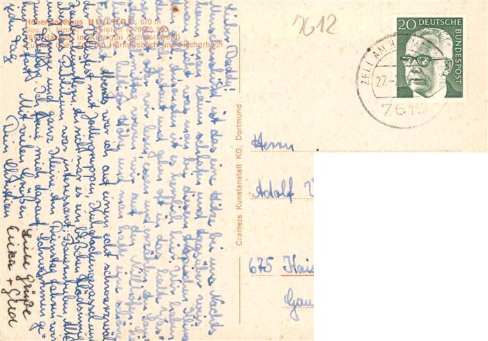 73928954 alte Postkarte Haslach Kinzigtal Hoehengasthaus Nillhof postalisch gelaufen Erhaltung siehe scans [FriedD77] KatCode: 11110008317040