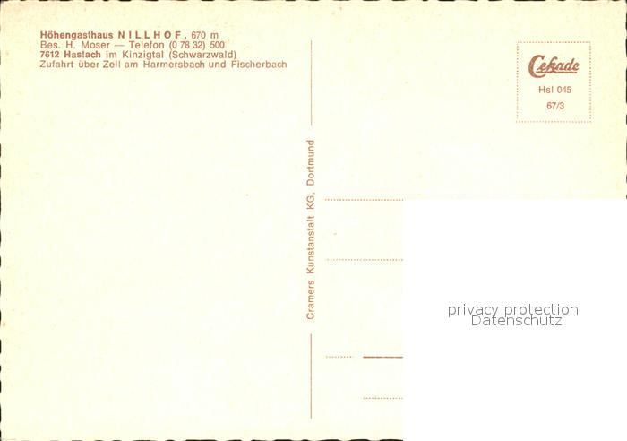72097481 Haslach Kinzigtal Hoehengasthof Nillhof postalisch nicht gelaufen Erhaltung siehe scans KatCode: 11110008317040
