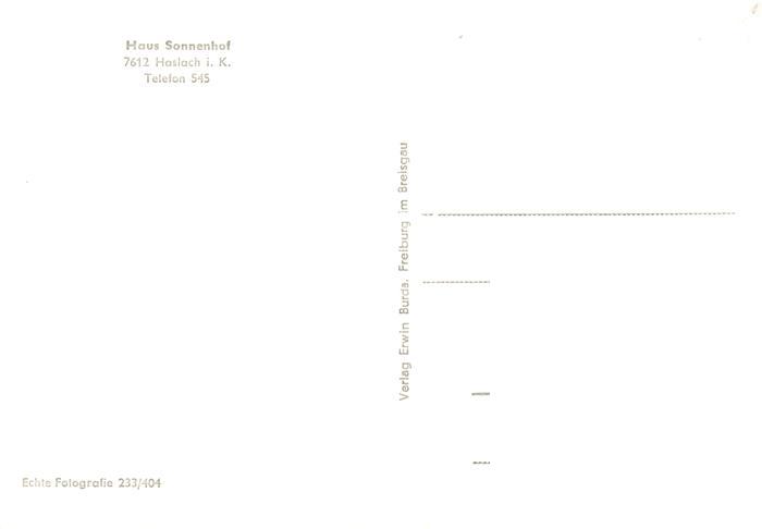 73869700 Haslach Kinzigtal Hotel Haus Sonnenhof im Schwarzwald postalisch nicht gelaufen Erhaltung siehe scans [FriedD77] KatCode: 11110008317040