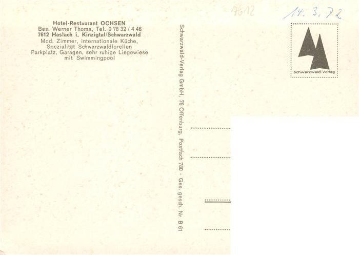 73928656 Haslach Kinzigtal Hotel Restaurant Ochsen postalisch nicht gelaufen Erhaltung siehe scans [FriedD77] KatCode: 11110008317040