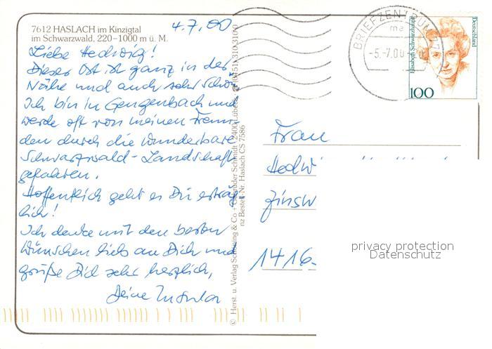 73165410 alte Postkarte Haslach Kinzigtal Panorama postalisch gelaufen Erhaltung siehe scans [KathaD81] KatCode: 11110008317040