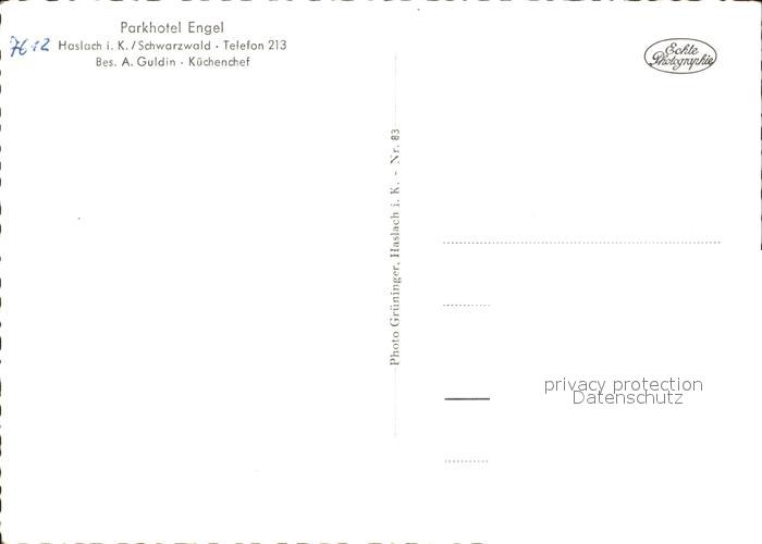 72433574 Haslach Kinzigtal Parkhotel Engel postalisch nicht gelaufen Erhaltung siehe scans KatCode: 11110008317040