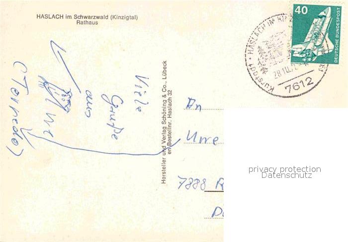 72811603 alte Postkarte Haslach Kinzigtal Rathaus postalisch gelaufen Erhaltung siehe scans [FriedD77] KatCode: 11110008317040