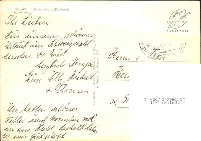 72557311 alte Postkarte Haslach Kinzigtal Schwimmbad postalisch gelaufen Erhaltung siehe scans [KathaD79] KatCode: 11110008317040