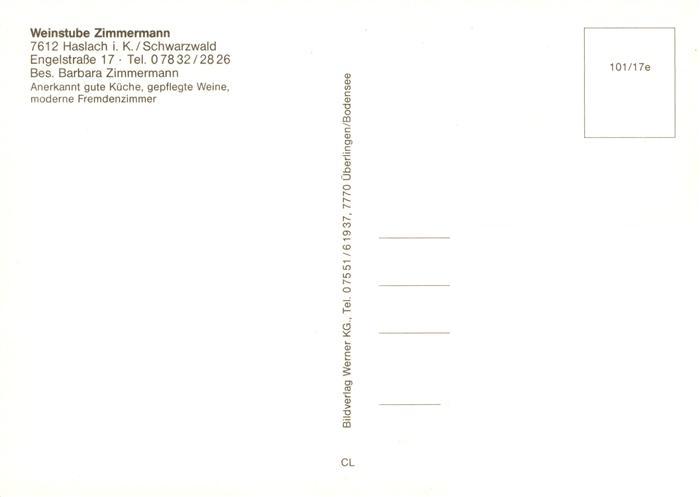 73884822 Haslach Kinzigtal Weinstube Zimmermann Gastraum Fremdenzimmer postalisch nicht gelaufen Erhaltung siehe scans [FriedD77] KatCode: 11110008317040