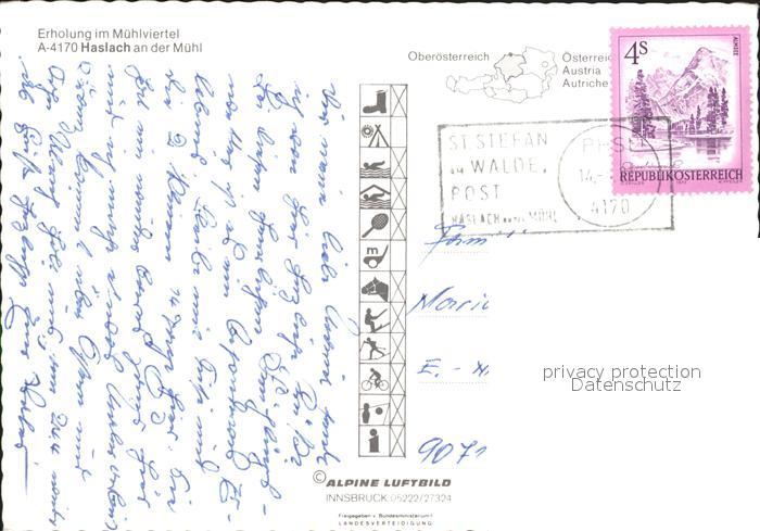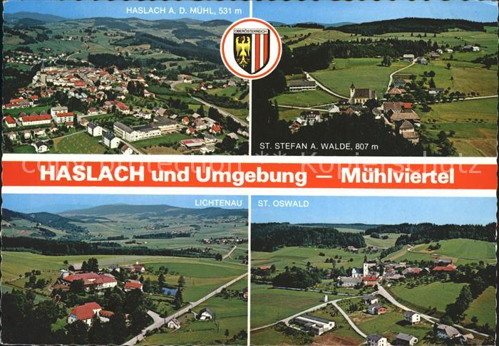 72157512 alte Postkarte Haslach Muehl Muehlviertel St Stefan Lichtenau St Oswald Fliegeraufnahme postalisch gelaufen Erhaltung siehe scans KatCode: 11390313041309