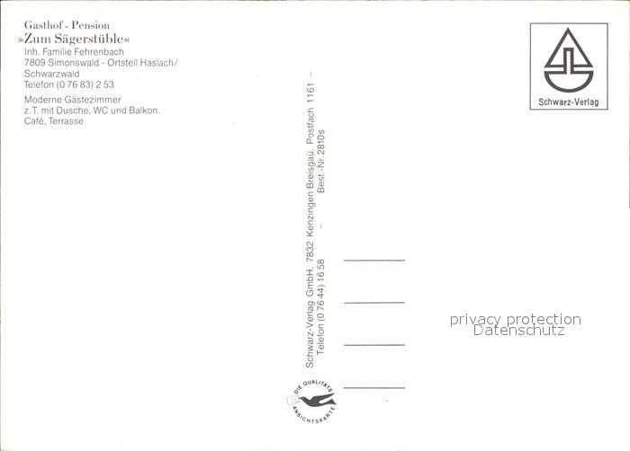 72425167 Haslach Simonswald Gasthof Pension Zum Saegerstueble Schwarzwald postalisch nicht gelaufen Erhaltung siehe scans KatCode: 11110008316042