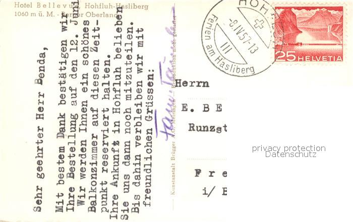13328909 alte Postkarte Hasliberg Hohfluh Hotel Bellevue Alpen postalisch gelaufen Erhaltung siehe scans [FriedD77] KatCode: 11470060210576