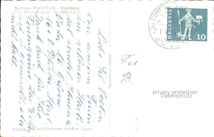 11779193 alte Postkarte Hasliberg Hohfluh Kurhaus postalisch gelaufen Erhaltung siehe scans KatCode: 11470060210576
