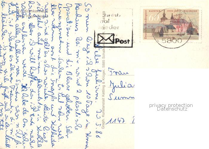 73101017 alte Postkarte Haspe Hagen EV Krankenhaus postalisch gelaufen Erhaltung siehe scans [WerneD78] KatCode: 11110005914000