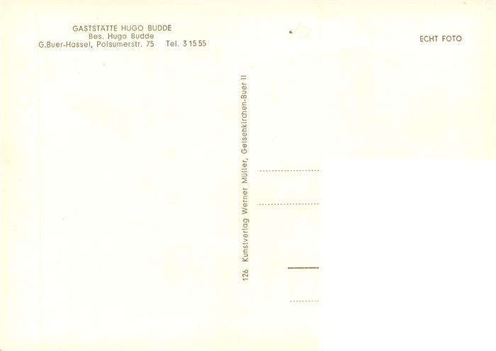 73891623 Hassel Buer Gelsenkirchen Gaststaette Hugo Budde postalisch nicht gelaufen Erhaltung siehe scans [FriedD77] KatCode: 11110005513000