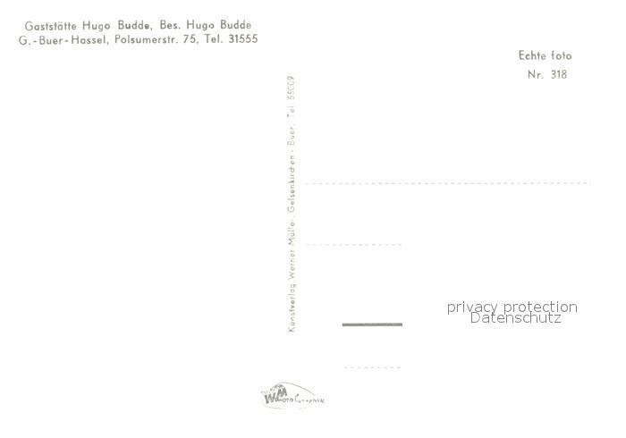 33665144 Hassel Gelsenkirchen Gaststaette Hugo Budde Automobil postalisch nicht gelaufen Erhaltung siehe scans [FriedD77] KatCode: 11110005513000