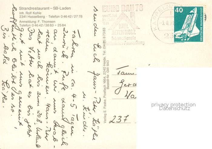73758779 alte Postkarte Hasselberg Ostsee Campingplatz Hasselbarg Strandrestaurant Strand postalisch gelaufen Erhaltung siehe scans [LiesaD40] KatCode: 11110001059121
