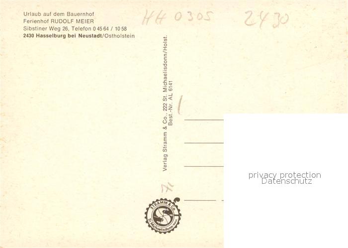 73641527 Hasselburg Altenkrempe Urlaub auf dem Bauernhof Ferienhof Meier Viehweide Pferdekoppel postalisch nicht gelaufen Erhaltung siehe scans [FriedD77] KatCode: 11110001055002