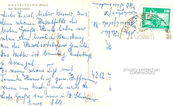 72962987 alte Postkarte Hasselfelde Am Rabenstein postalisch gelaufen Erhaltung siehe scans [LiesaD40] KatCode: 11110015085150