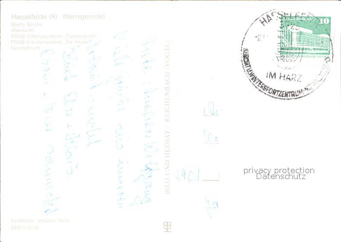72372693 alte Postkarte Hasselfelde Breite Strasse Erholungsheim Tannenwald Zur Krone Godelteich postalisch gelaufen Erhaltung siehe scans KatCode: 11110015085150