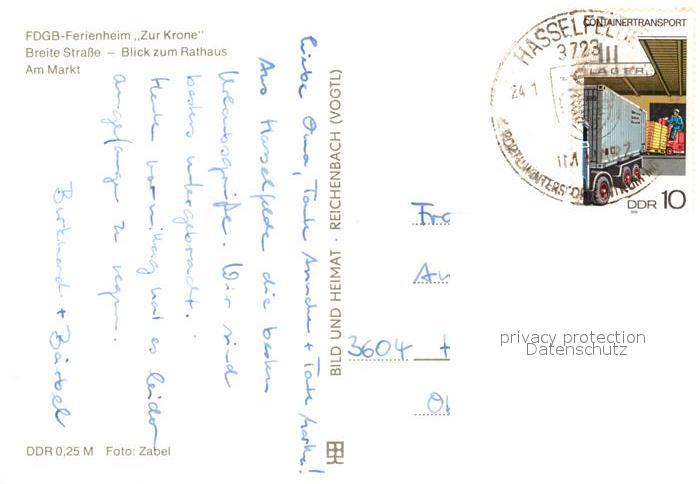 73046162 alte Postkarte Hasselfelde FDGB Ferienheim Zur Krone Breite Strasse Rathaus Markt postalisch gelaufen Erhaltung siehe scans [KathaD81] KatCode: 11110015085150