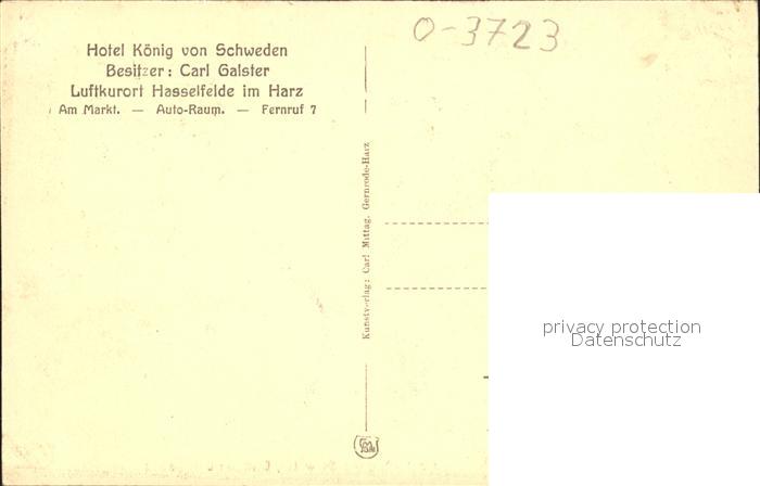 32180664 Hasselfelde Hotel Koenig von Schweden postalisch nicht gelaufen Erhaltung siehe scans KatCode: 11110015085150