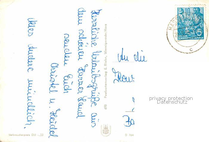 72703422 alte Postkarte Hasselfelde Marktplatz Hauptstrasse Teilansicht Waldfreibad postalisch gelaufen Erhaltung siehe scans [FriedD77] KatCode: 11110015085150