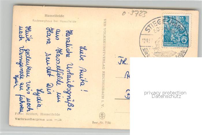 43499981 alte Postkarte Hasselfelde Radeweghaus postalisch gelaufen Erhaltung siehe scans [LiesaD40] KatCode: 11110015085150
