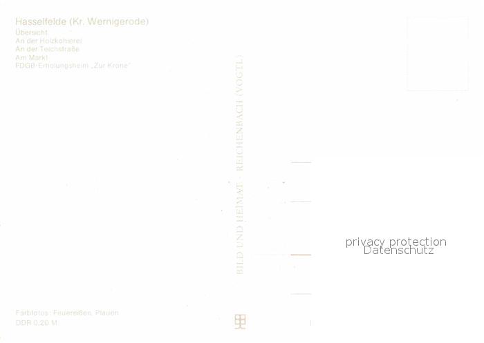 72652150 Hasselfelde uebersicht Holzkoehlerei Teichstrasse Markt FDGB Erholungsheim postalisch nicht gelaufen Erhaltung siehe scans [FriedD77] KatCode: 11110015085150